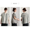 「やさしい、ストライプのスカート」と全く同じ生地です。ツーピースっぽく着用できます!フロントを少しインしてもいいし、インしなくても様になります。 ツーピースにしたときに、シャツの裾幅とスカートのウエストからの膨らみ具合が心配でしたが、着用してみるとシャツの裾幅の方が断然広く、気になるお腹周りをうまくカバーをしてくれました。これはうれしい! 「こなれサマーベスト(黒)」とも相性が良かったです。 シャツ単体の感想としては、キチンと感が出ていて、程よく女性らしいです。白系、黒系、デニムのボトムはもちろんのこと、店長のピンクのパンツにもとっても合います。 着心地も気持ちいいですし、後ろボタンは五十肩でも余裕で留めれたのでセーフ! 買って大正解でした。 今後もスカートとシャツのお揃い商品を出して欲しいな!!!