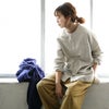 確かにゴワゴワ感のある服です。さらに、少し腕の長さがある気がするので、腕を2回ほどまくりますが、ゴワ感のためまくりにくいです。ただその硬さのおかげで、まくると形はいいなと思います。この服の上にカーディガン着るのはなかなか大変かも?ベストなら有りなのかな。