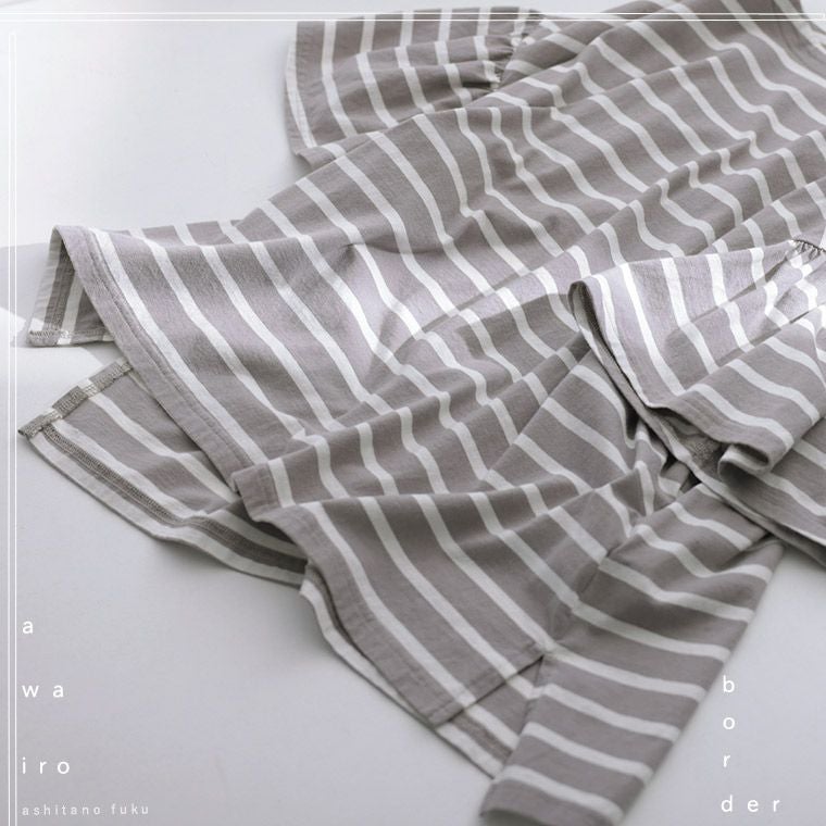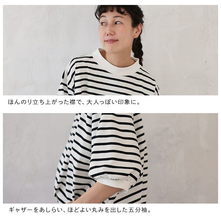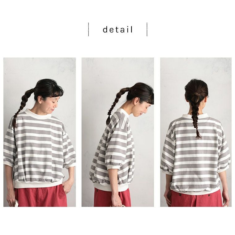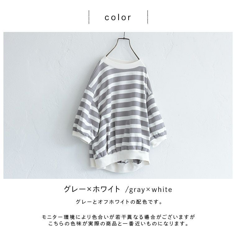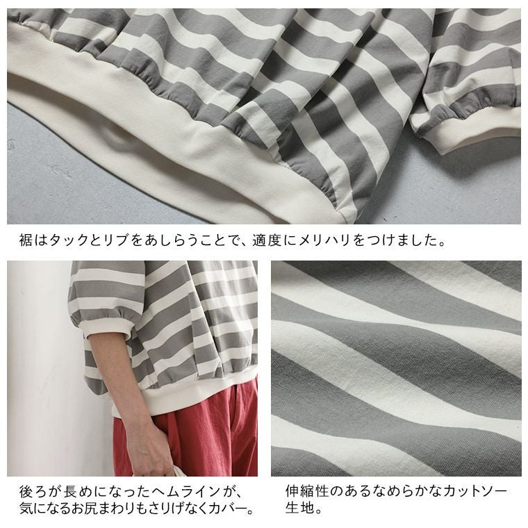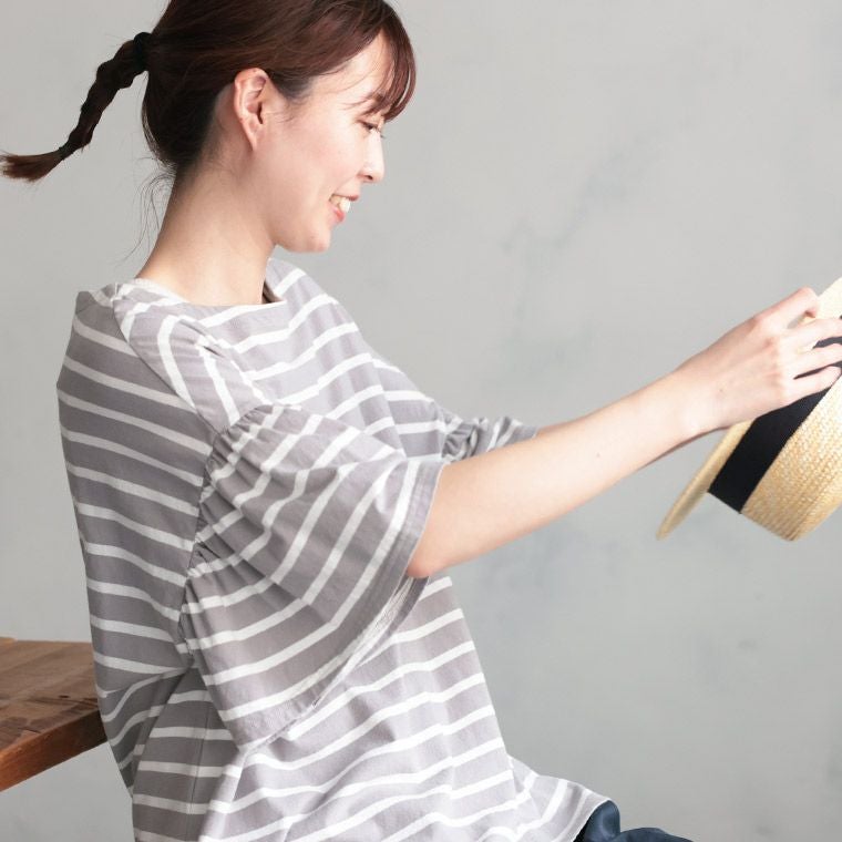 あわいろボーダーの袖フリルカットソー