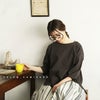 身長152cm体重63kgの、樽体型です。普段でも気楽に着られる服をと思い、スミクロのLLを購入しました。たっぷりな大きさで、着用感がラクラク。とってもいいカンジです。下にボーダー柄のアリクイのタンクトップを着れば、コーデ間違いなしですね。ただ、袖の長さが数字的には短いとわかっていても、画像ではどれも袖口を折った状態での着用だったので、着てみてどのくらいの長さの袖なのか、イマイチ実感出来ませんでした。実際は七〜八分かな? 素材も、画像では布なのかカットソーなのか判断しづらかったです。実際はTシャツのようなカットソー生地でした。たくさんの画像表示は、購入する時の最大の判断材料ですが、画像だけではわかりにくいところを、文字で説明していただけたらありがたいです。