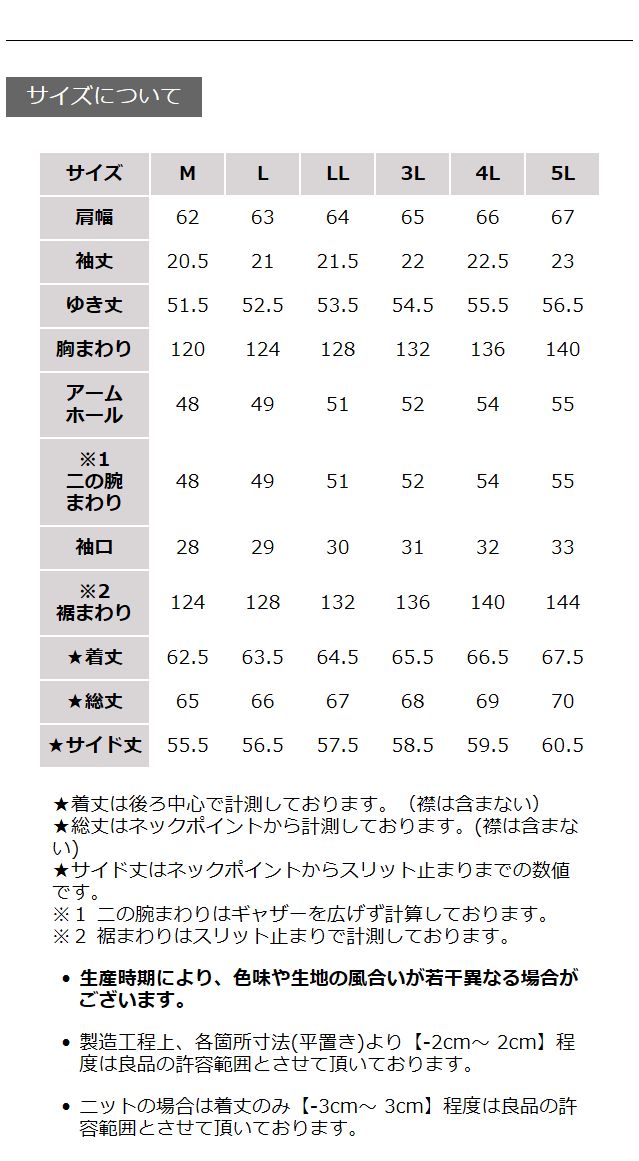 皆さん書かれてますが、私は袖の絞り部分がきつくてダメでした。返品手続きは面倒なため、絞りをカットしてオープンな袖にしました。ちょうちん袖の可愛さは無くなりましたが、この暑さで風の入る涼しい袖にー。結果オーライ。袖周り寸法が記載されてるといいかな。