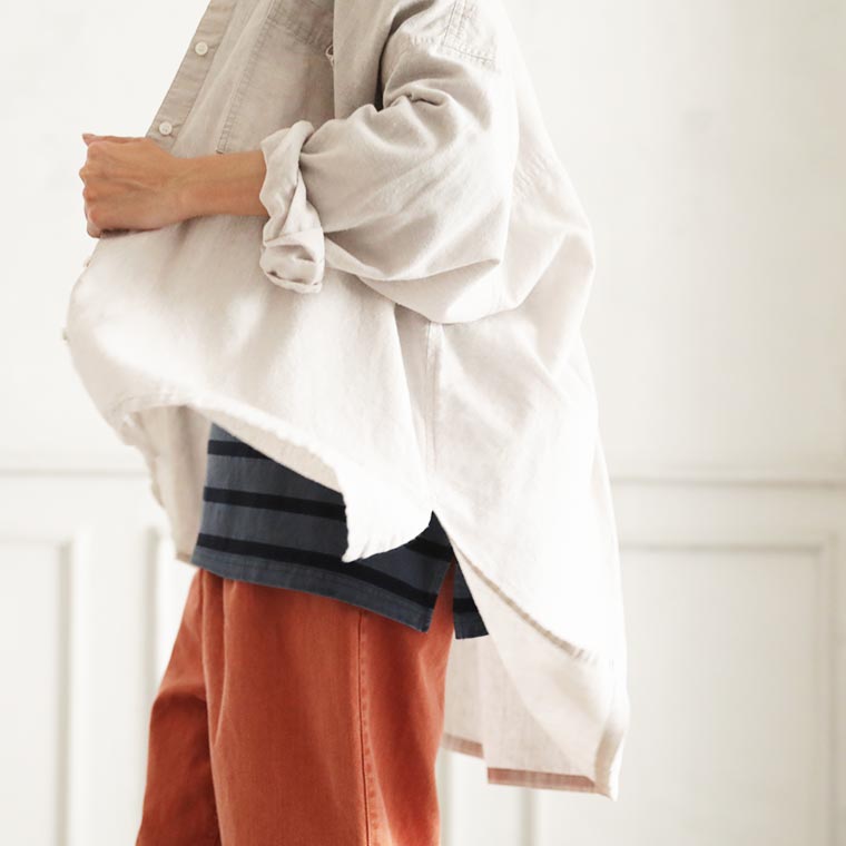 半袖では、少し気温が、、、と思うときに、欲しいと思ったシャツです。 着やすくて、とても気に入っています。
