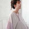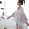 思っていたより、ピンクでした。ラベンダーと言われたらラベンダーにも見えるかなぁ‥。でも、悪くないピンクで、ジーンズに似合いそうです。あれー?と思って写真を確認したけど、色味として、これだなと感じるのは「袖口にも刺繍を入れて細部までこだわりたっぷり」の写真ですね。ここの色がジャストフィットです。夏でも、二の腕問題でカーディガン暮らしの私には、おそらくこのブラウス羽織っている方が涼しいのではないかと期待しています。