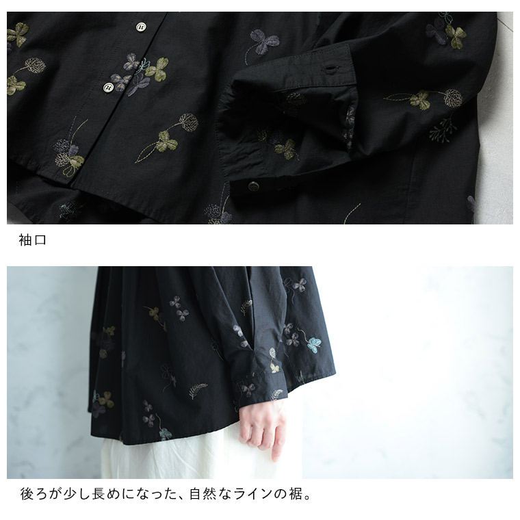 秋冬ものにしては、生地が薄めです。クローバーの刺繡と黒の色が甘辛でいい感じです。一つサイズを小さくして、正解でした。ステキなお洋服、大事に着させていただきますね。
