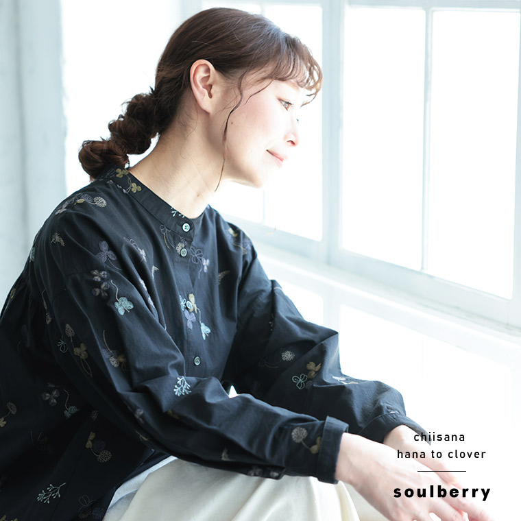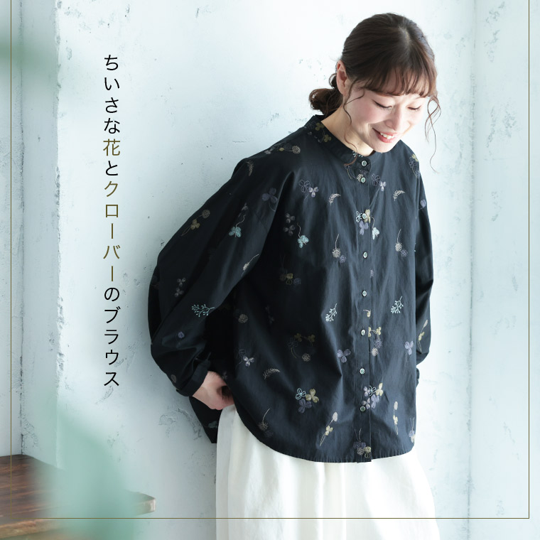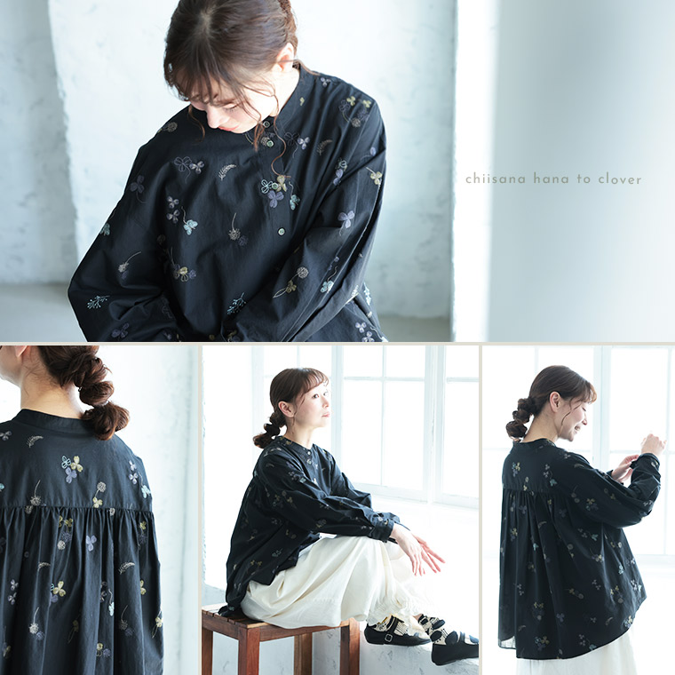 ちいさな花とクローバーのブラウス