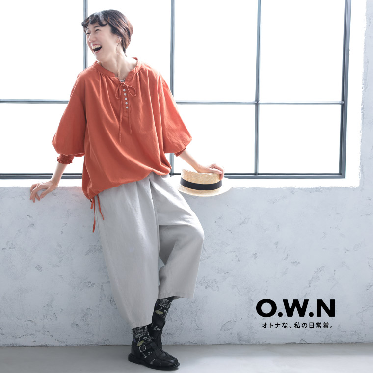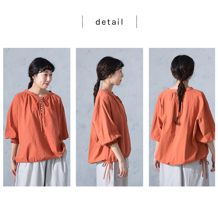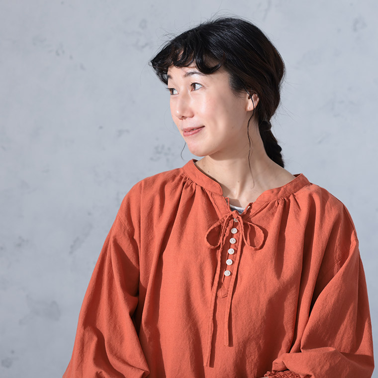 1枚で夏らしい、オレンジカラーのブラウスです。