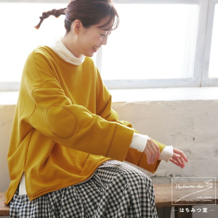 肘ステッチのプルオーバー