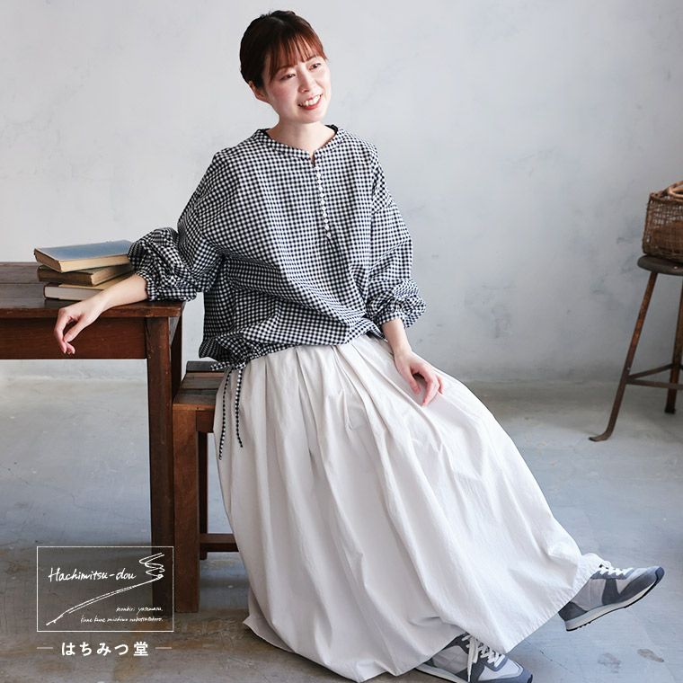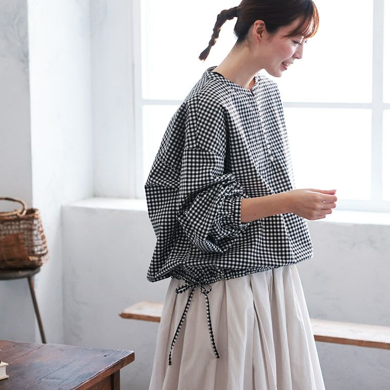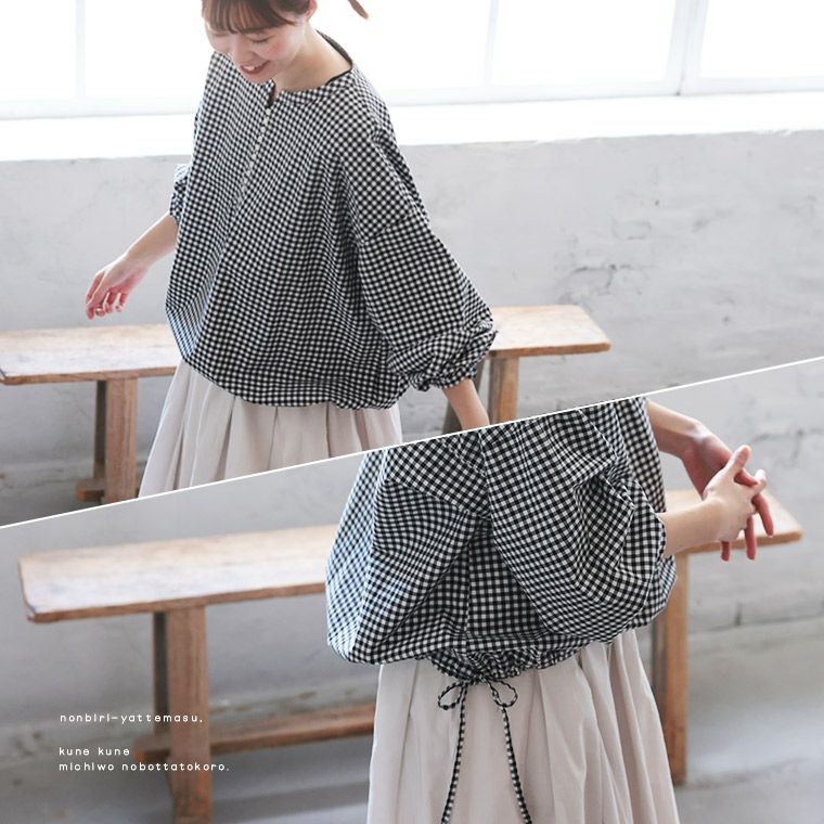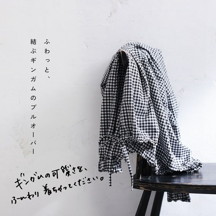 ふわっと、結ぶギンガムのプルオーバー