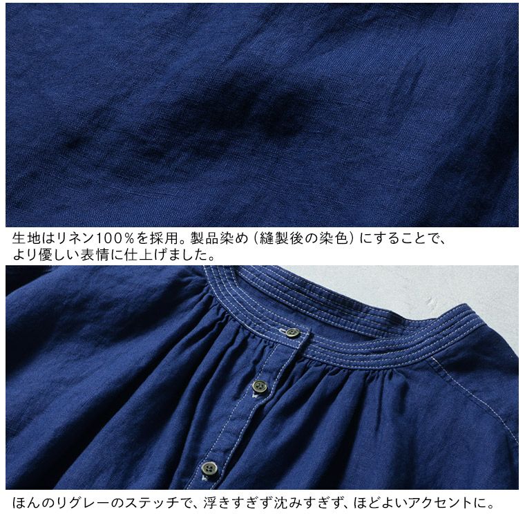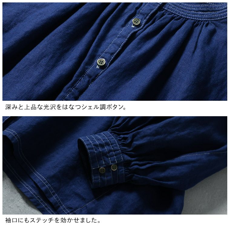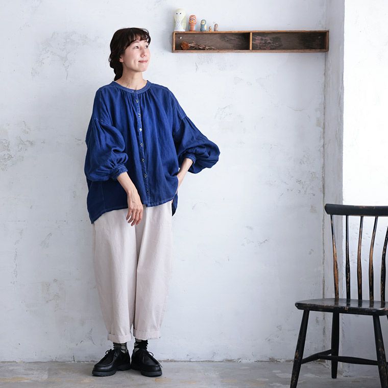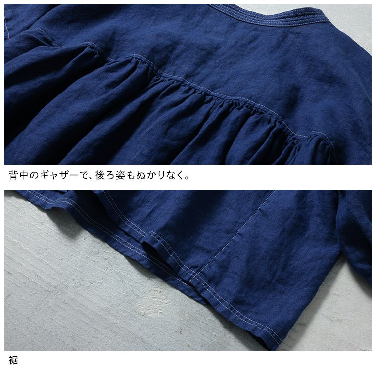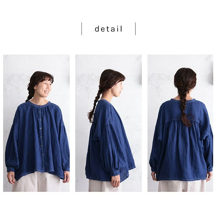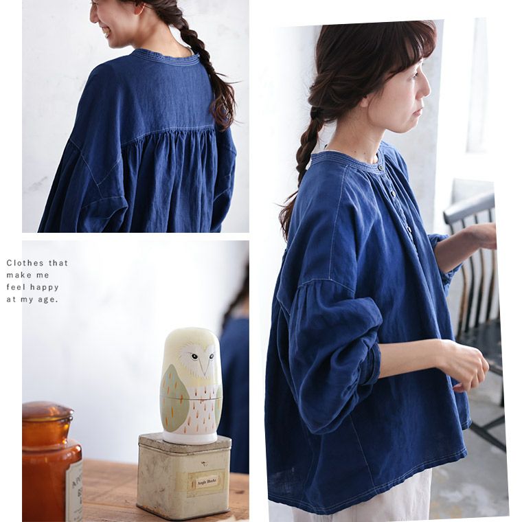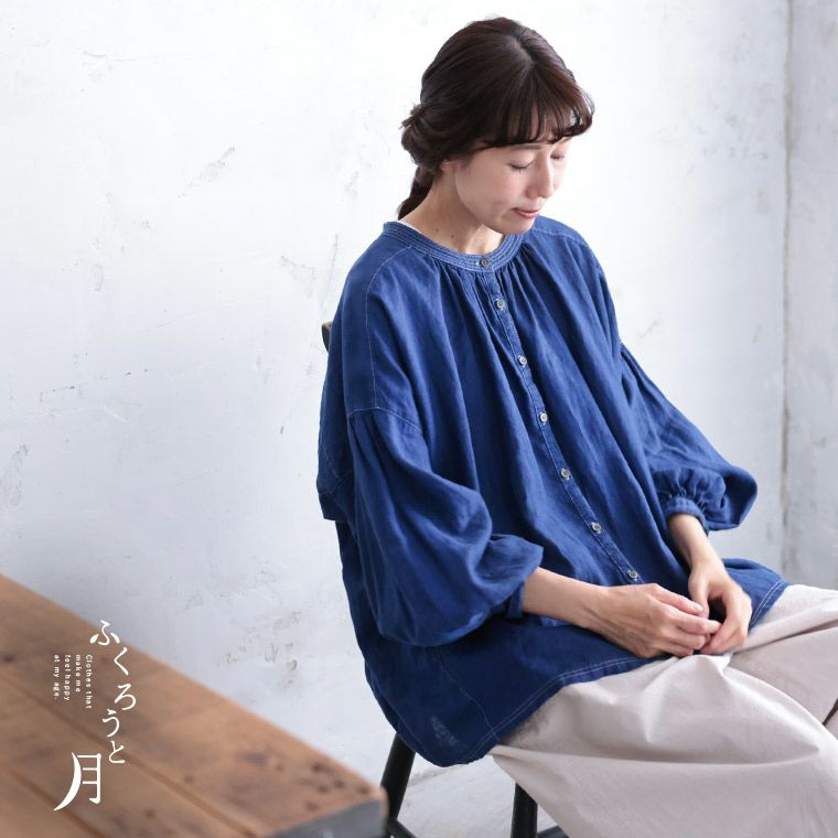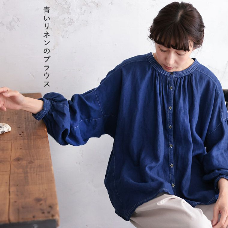 青いリネンのブラウス