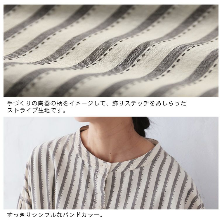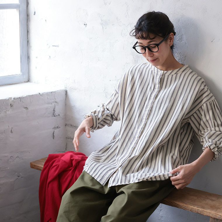 十草模様の手仕事シャツ