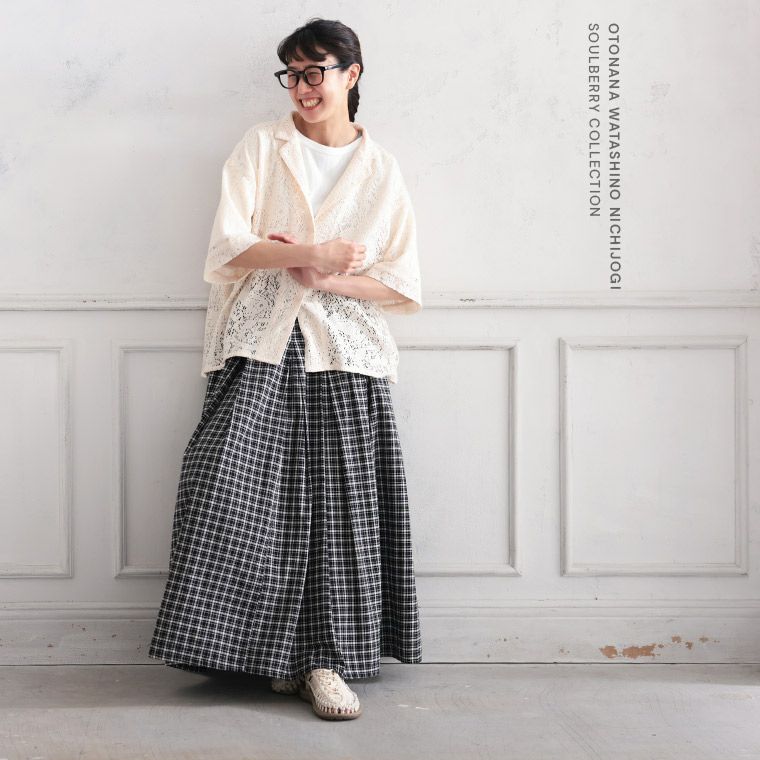 みず玉とチェックのブラウス