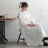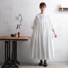 レビューを参考にサイズダウンし、Mサイズにしましたが正解でした。ふんわりとひろがるシルエットが多少着膨れ感を出すように思いましたが主人に見せたところ、好評でした。シワが気になる神経質な方なので1度必ず洗うかファブリーズ等でシワを伸ばすのですが、こちらは1度洗ったらシルエットが落ち着いたように思います。とにかく胸元のV字ギャザーが綺麗!袖のボリュームも良いですし、袖はたくし上げてボリュームを出して着ると可愛いです。丈は長いですが長過ぎず私は好きです。ふくろうと月の丈の短い黒いブラウスを羽織って、ナイ〇のエアリフトを履いたコーディネートを考えてあります。モノトーンにしても白の分量が多いので喪服のようにはならないですし、冬も白ワンピはお洒落なのでコート下に着ようと思います!素敵なワンピースをありがとうございます!