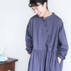 深みのある不思議な色あい、斜めボタンの、まず見かけない個性的なデザイン。物語を感じるワンピースです。少しコシのある生地は着くずれもなく、すっきりと着用できます。