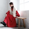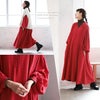 赤一色ですが、リネン混だからなのかキツい色ではなく、でも顔映りはよくなる感じです。私は上にmixナッツのカーディガンを羽織るのがお気に入りです。 身幅がたっぷりあるので、もっと寒くなったら中に着込むこともできますが、後ろにもギャザーが入っているせいか、ずどーんという印象にならない気がしてうれしいです。 普段から着ていますが、小物合わせでちょっとしたお出かけにも着て行けるステキな雰囲気があります。