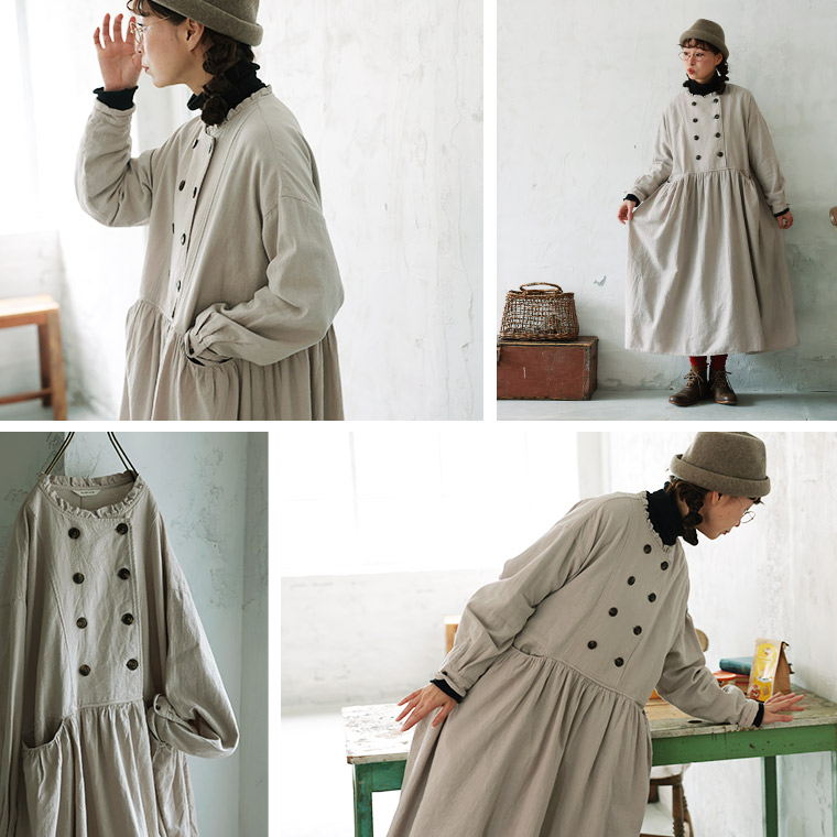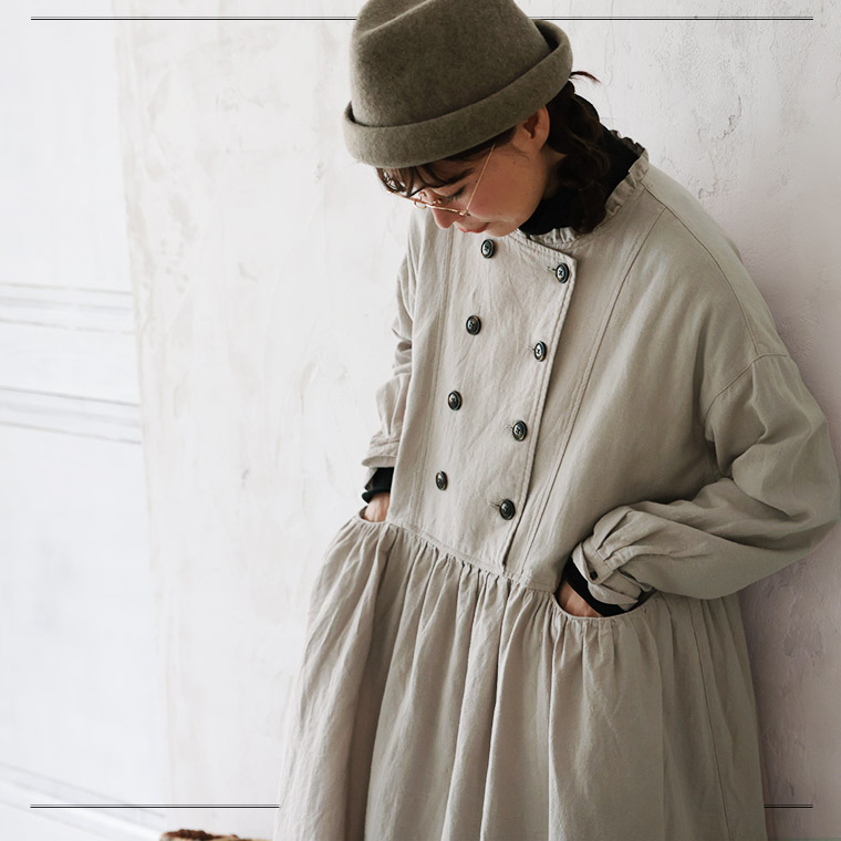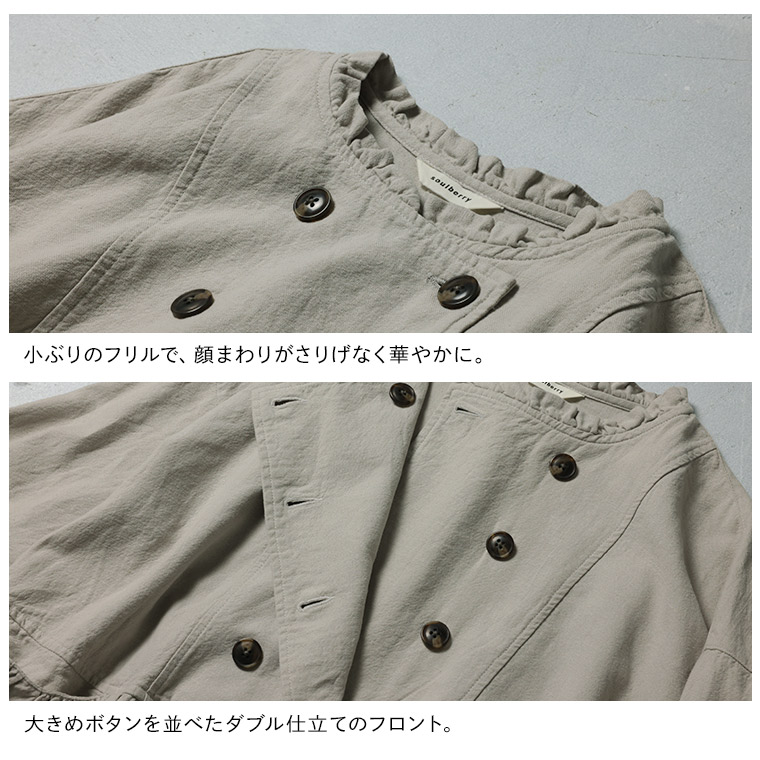 襟もとには繊細なフリルでちょっぴり甘さをトッピング。