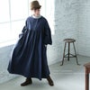 はちみつ堂斜めボタンの群青色ワンピース