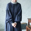 斜めボタンの群青色ワンピース