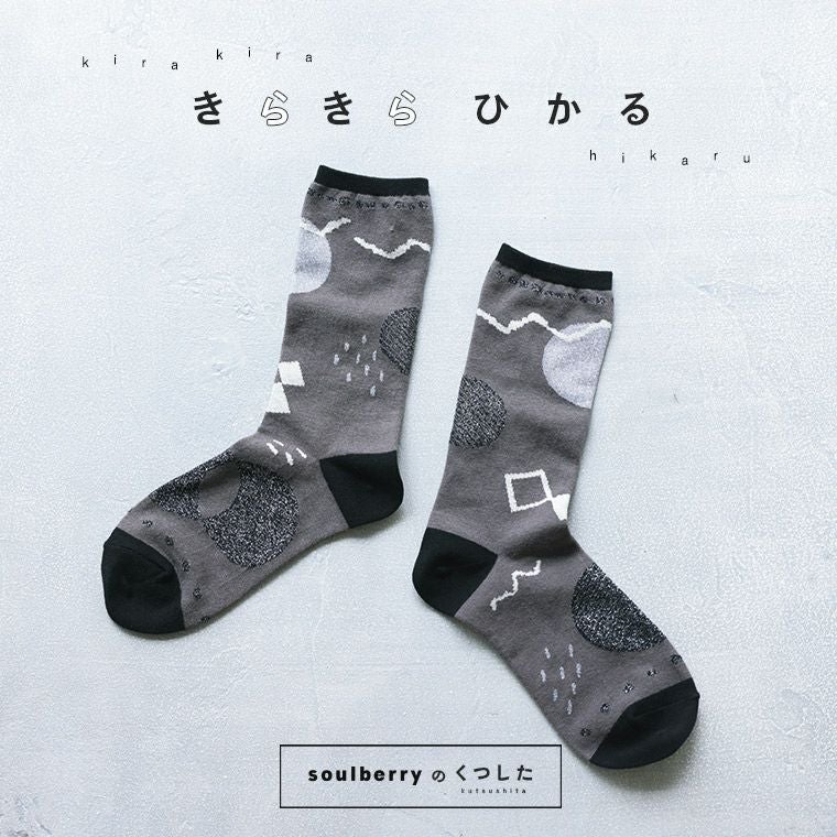 抽象的な柄が歩くたびにきらきら光る靴下です。