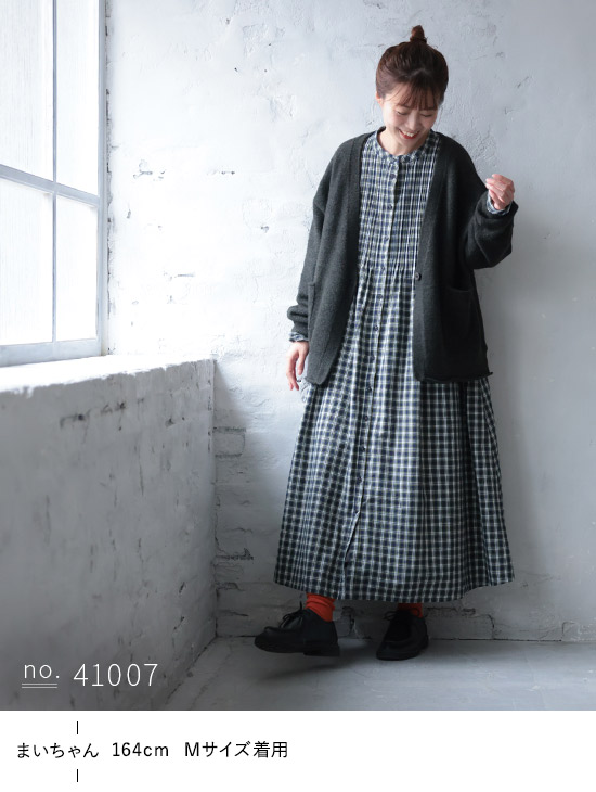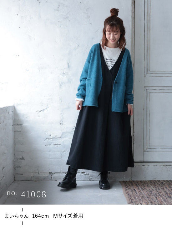 丈感はお尻半分隠れるくらいです。ふわっとした生地でチクチクせず、意外と軽いので着ていて疲れません。