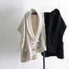 ベストらしからぬデザインに迷いましたが、ジャケット着るほどでもない季節の変わり目の羽織にもなるかな…と思い決断!!色は迷いましたがブラックにしました。意外と厚手…というか、襟があるし、肩も落ちるので暖かいです。なので夏はちょっと暑いかな?襟部分にブローチとか付けるとまた雰囲気変わり、色んな着方が出来そうで楽しみです!!