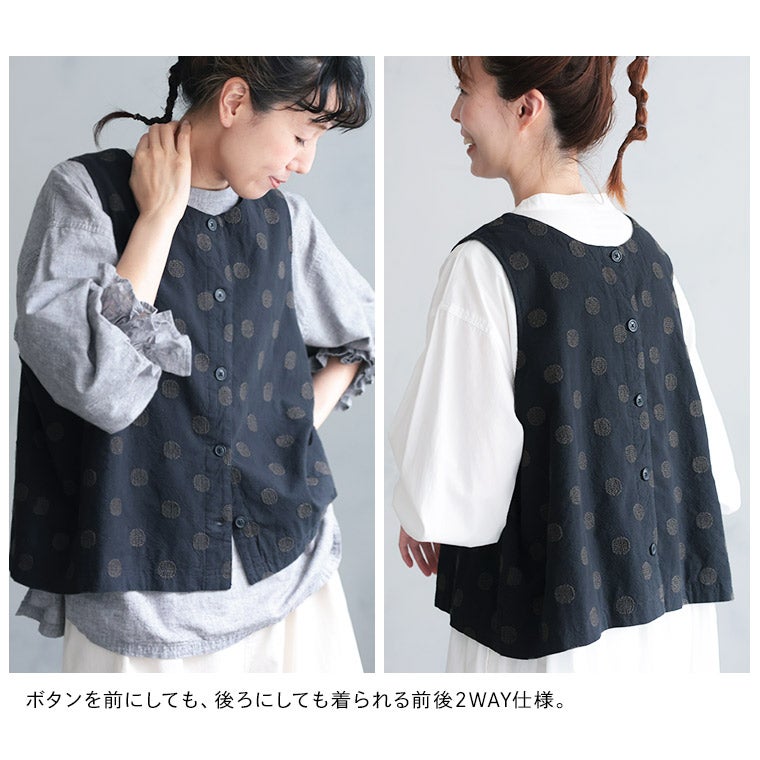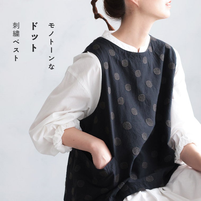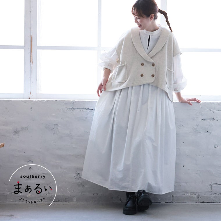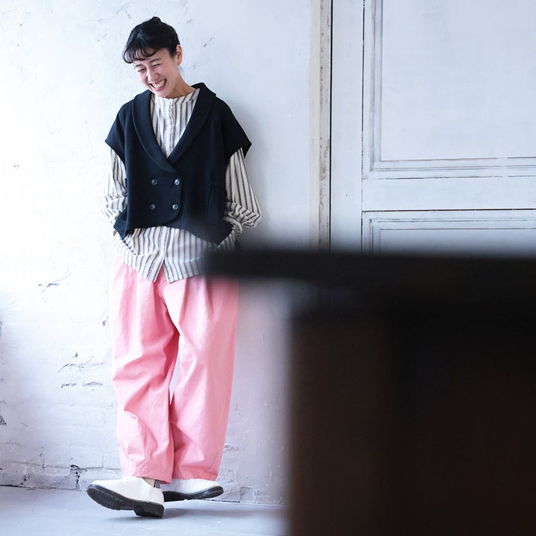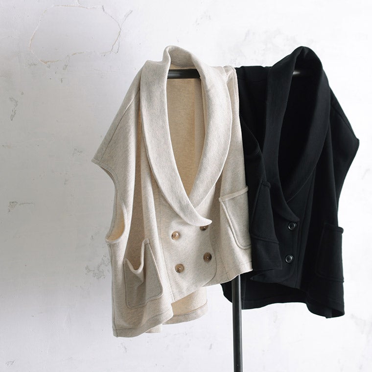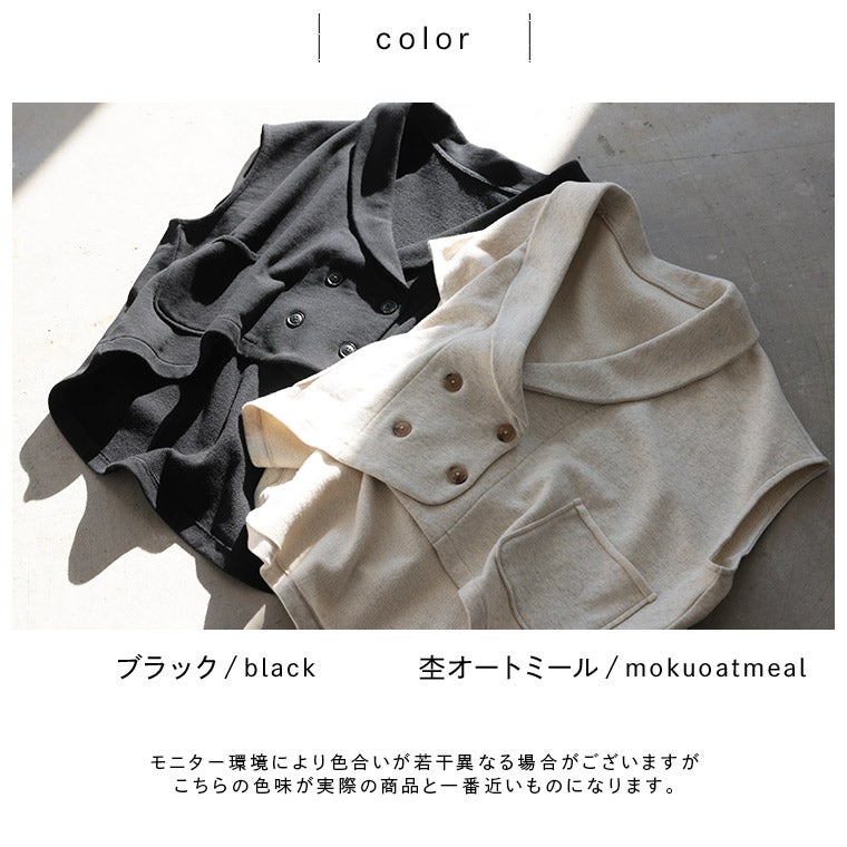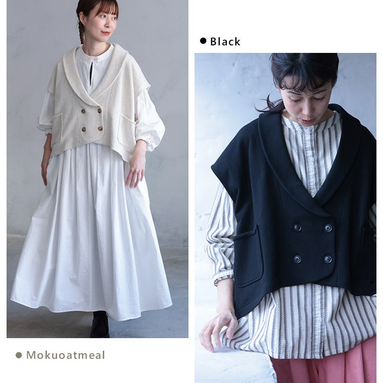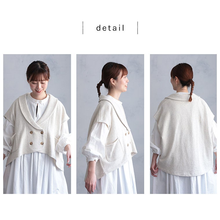 うしろでシャツとの重ね着を遊ぶニットベスト