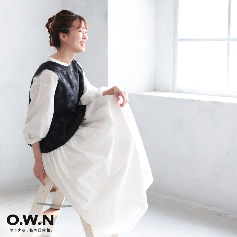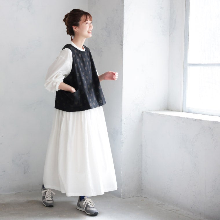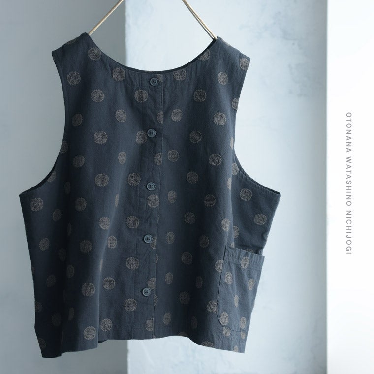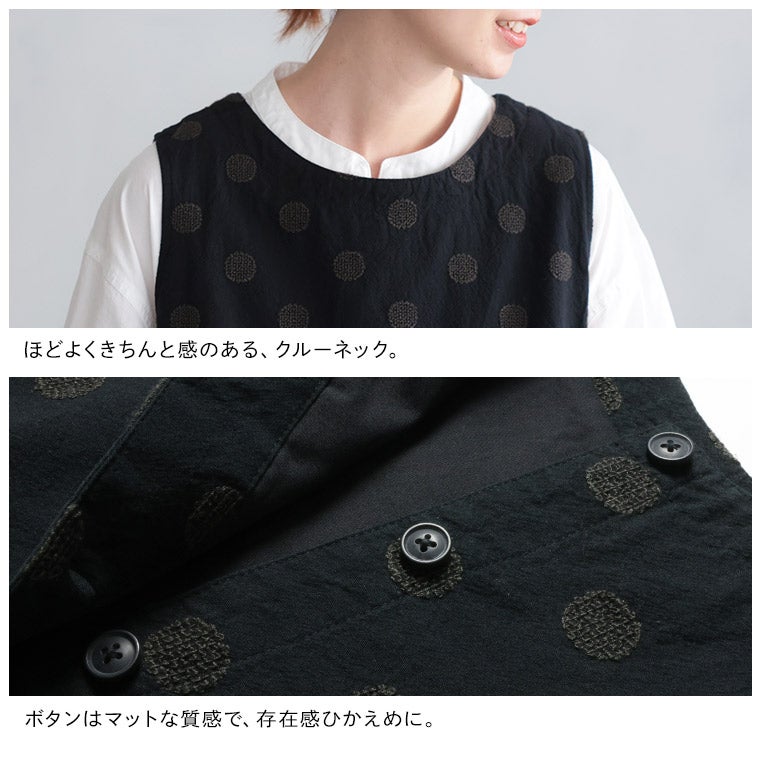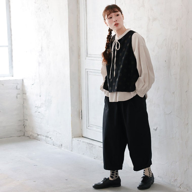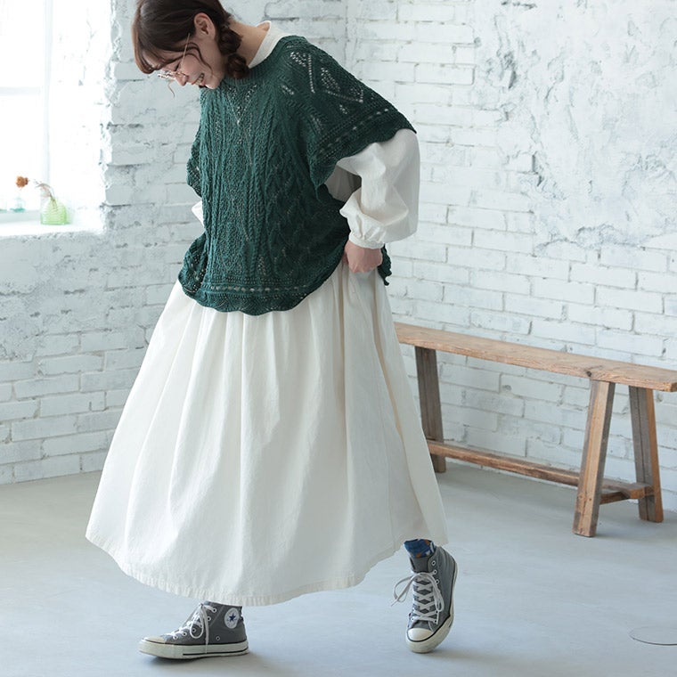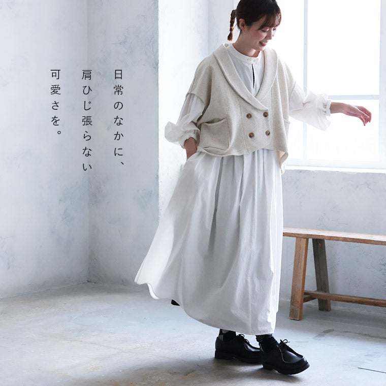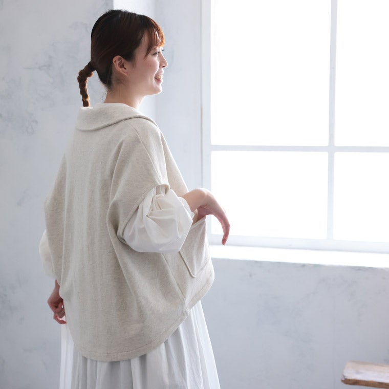 うしろでシャツとの重ね着を遊ぶニットベスト