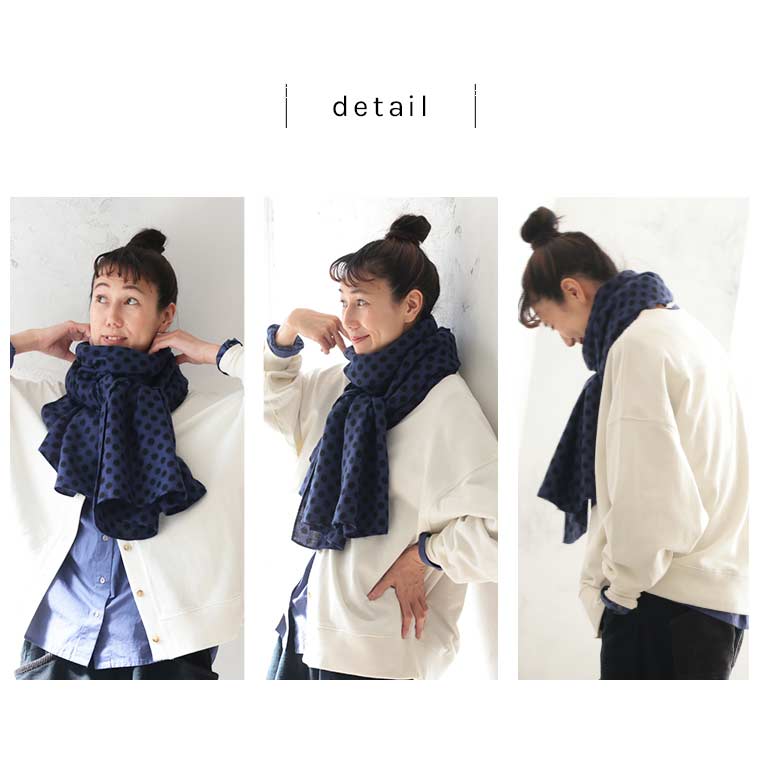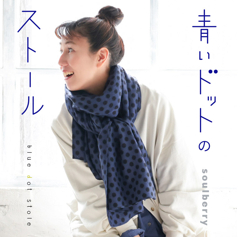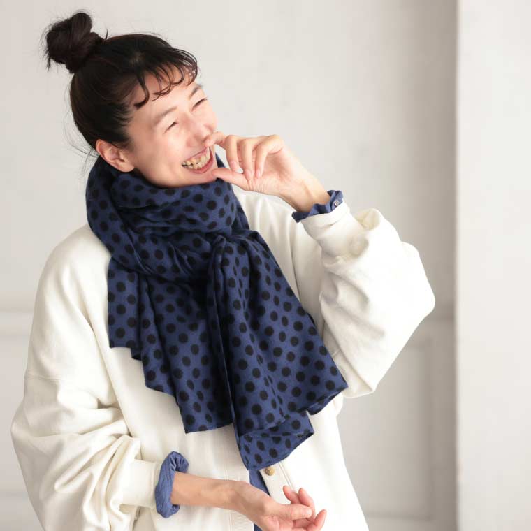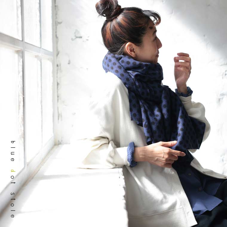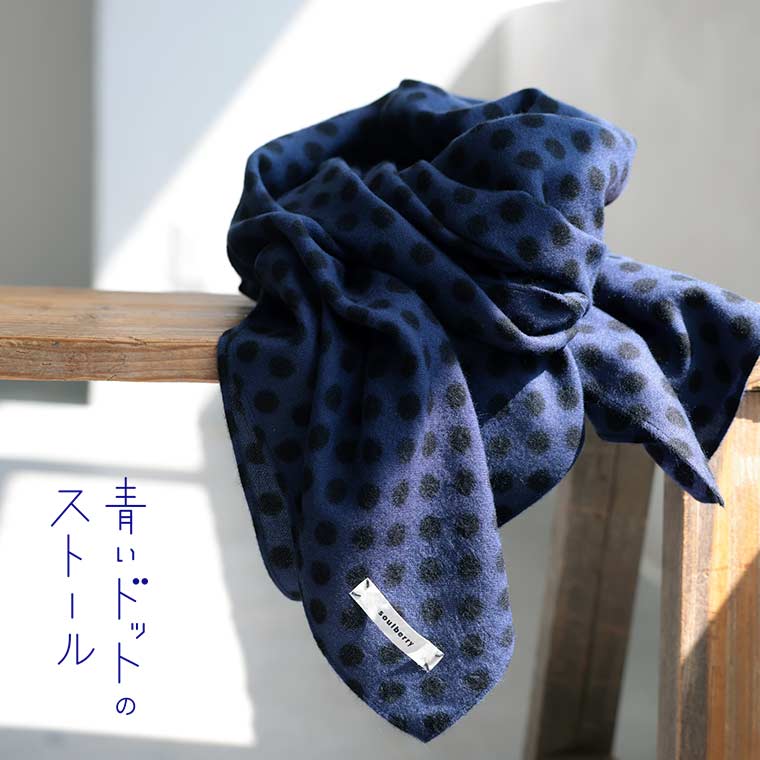 青いドットのストール