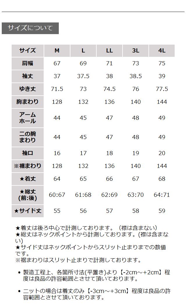 普段5Lですが無かったので、サイズ表を確認して4Lでも大丈夫そうだなと決定。