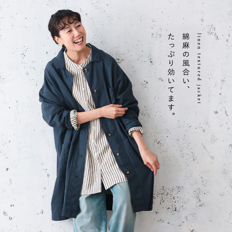 綿麻の風合いをたっぷり効かせた羽織りです。