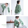 160cm、75kg、バスト小さめ、お腹太め、足は長めです。 ソウルベリーさんではトップスM 、ボトムLLか3L、普段は上下ともに3Lが多い体型です。 こちらは3Lにしましたが、少しゆとりがあります。 カーディガンと書いてありますが、写真のように前を閉めて着たらかわいいだろうなと思い、肉を拾わない絶対に余裕が出そうなサイズにしました。 …が、LLサイズならスッキリちょうど良く着れたかも?と思います。 色は、着用写真よりもワントーン濃くはっきりとした色だと感じました。着用写真は薄い明るめのグリーンですが、ボタンや生地説明の写真の色味が1番近いです。 (商品名はミントなグリーンですが、色の説明文はミントグリーンではなく、オールドグリーンとなっています…) 手首がしまっていたり、デザインはレトロでかわいいです。