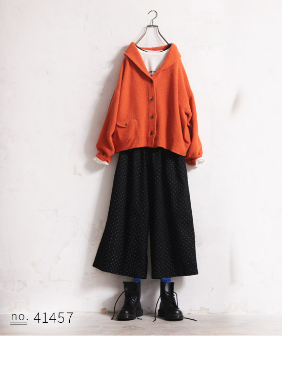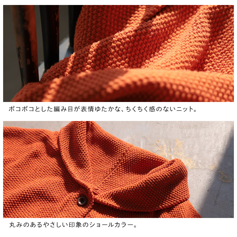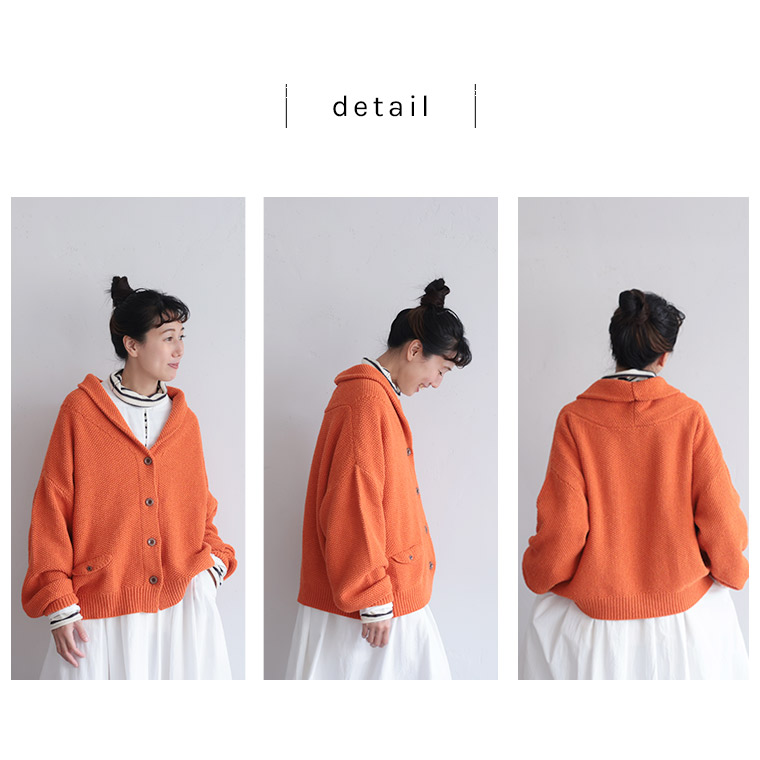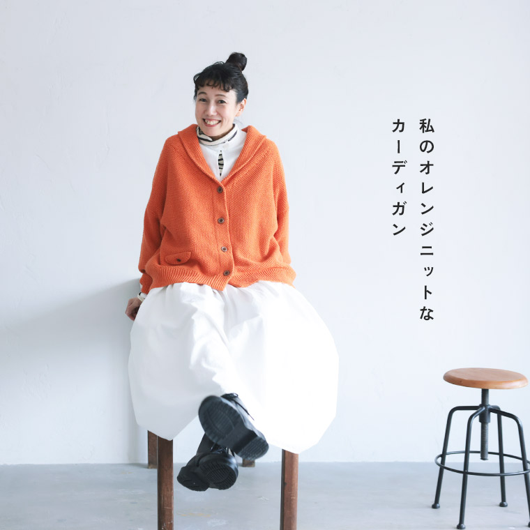 明るいオレンジですが、通勤に使ってるモノトーンと合わせるとそこまで違和感はなく着られました。暗い色になりがちな秋冬に良いアクセントになります。 大きめを買うと下に着るもので冬の間も調節できそうかなと期待してます。今の時期ならこのカーディガン一つだけで十分なので、半額購入できてラッキー。 今回これが初めてのsoulberry利用でしたが、デザイン気に入ったので今後も追いかけます。カジュアルな服が多いけど、コーディネート次第だと思うので通勤着特集してくれると嬉しい。