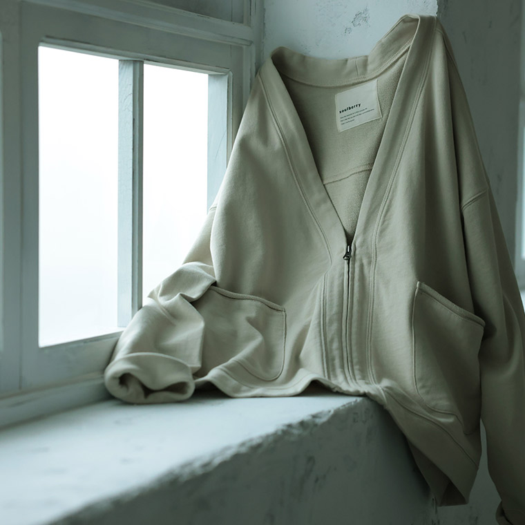 そこで辿り着いたのがカーデ感覚で着られる“フードなし”のデザイン。