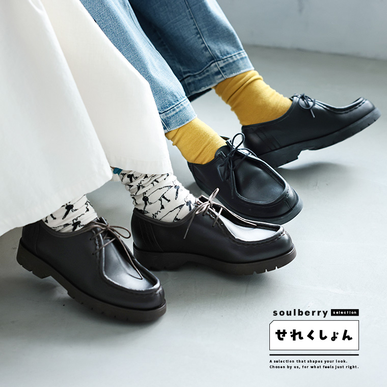 チロリアンシューズと呼ばれるデザインは重厚感と可愛さのバランスで