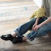 脚を通すとくたっと柔らかいシワが生まれます。