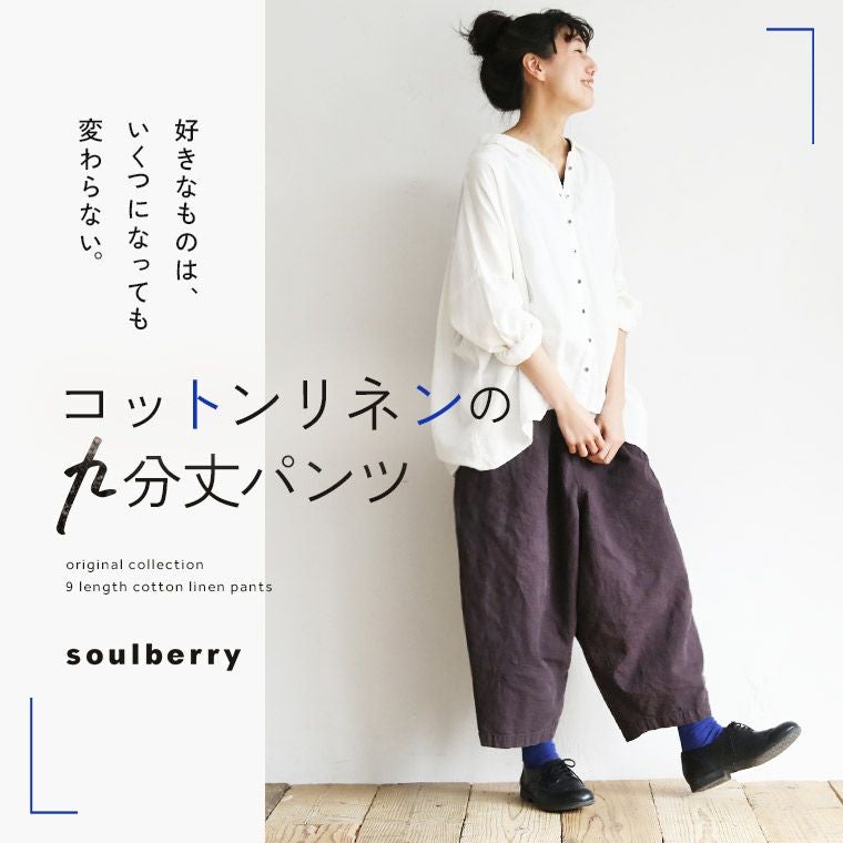 コットンリネンの九分丈パンツ