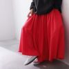 私には色が明るすぎるかなー。かなり膨らみそうだからサイズダウンかなー。と とても悩みましたが いつものサイズで購入しました。 生地感はとても薄くて軽くて滑らかで涼しいので履き心地はいいのですが こちらはかなり贅沢に用尺が使われているけれどギャザーだけでタックがないので 懸念していた通り、骨スト腰高腰張りの私には腰回りがあまりにも膨らんでしまいました。 ものすごくかわいいけれど、ふんわりロンスカはやっぱり無謀すぎたみたい。 あと色が画像よりもちょっと明るくて、赤というより朱色だったのも残念でした。