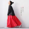 私には色が明るすぎるかなー。かなり膨らみそうだからサイズダウンかなー。と とても悩みましたが いつものサイズで購入しました。 生地感はとても薄くて軽くて滑らかで涼しいので履き心地はいいのですが こちらはかなり贅沢に用尺が使われているけれどギャザーだけでタックがないので 懸念していた通り、骨スト腰高腰張りの私には腰回りがあまりにも膨らんでしまいました。 ものすごくかわいいけれど、ふんわりロンスカはやっぱり無謀すぎたみたい。 あと色が画像よりもちょっと明るくて、赤というより朱色だったのも残念でした。