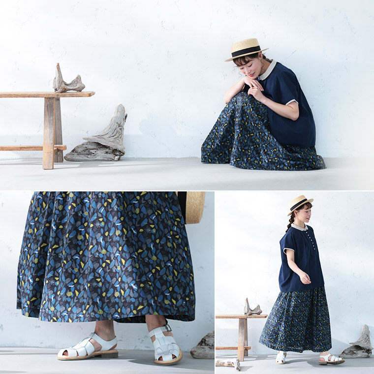 歩くたびゆれる柄は、せせらぎみたいに爽やか。