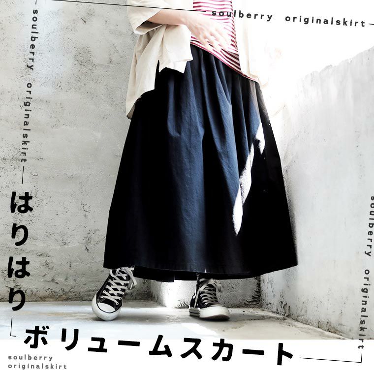 このスカートの醍醐味は、バサッと男前にはくボリューム感。