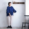 ふくろうと月青いリネンのブラウス