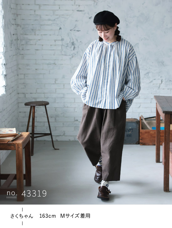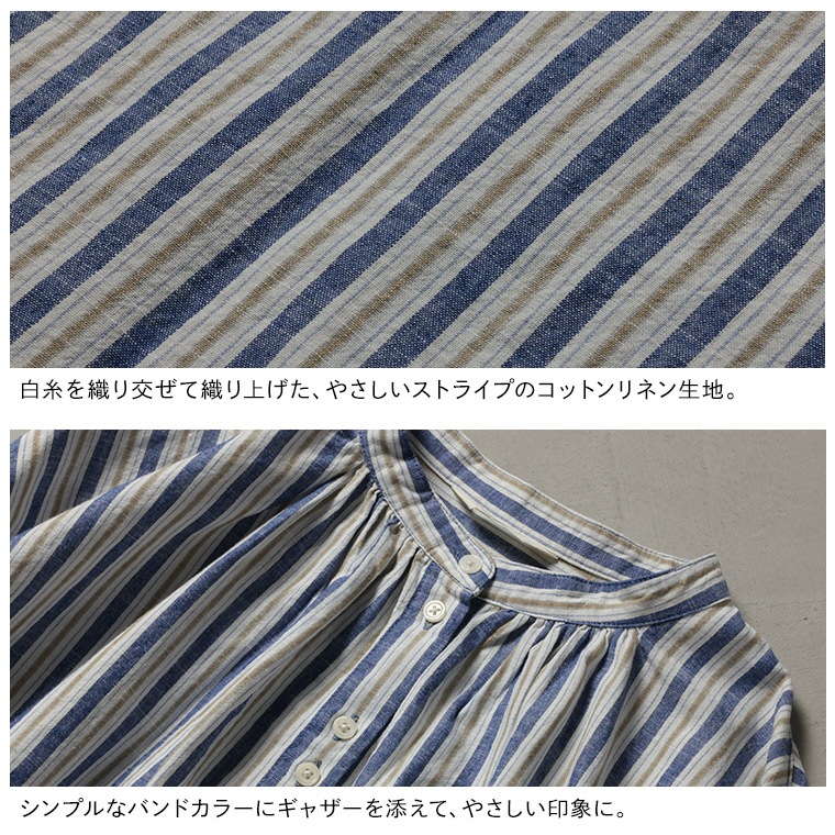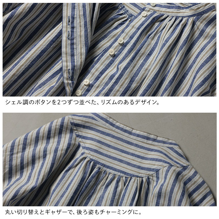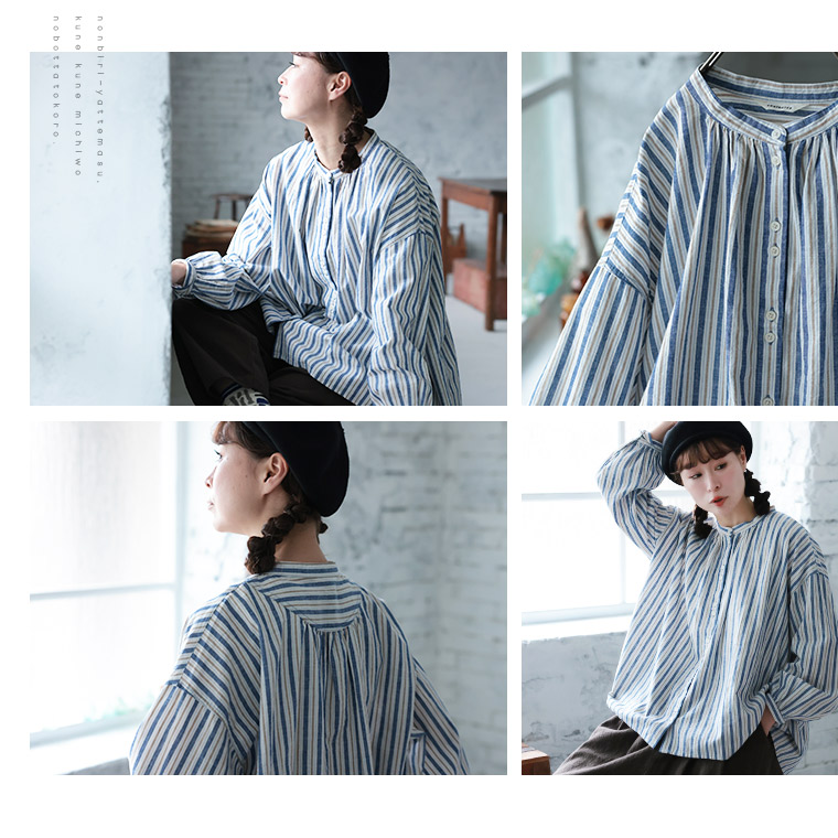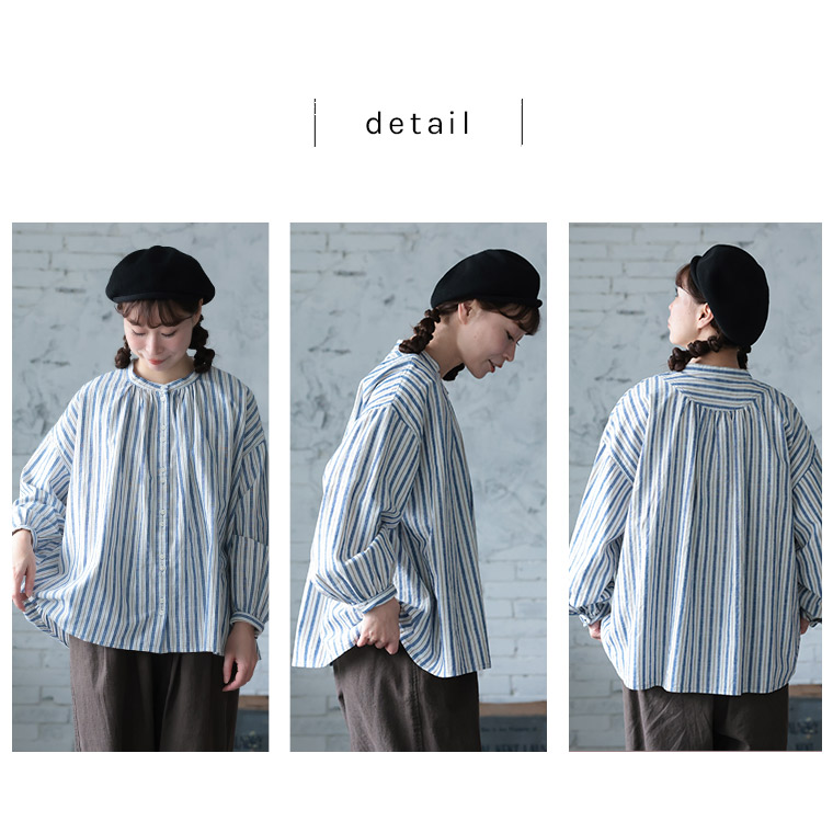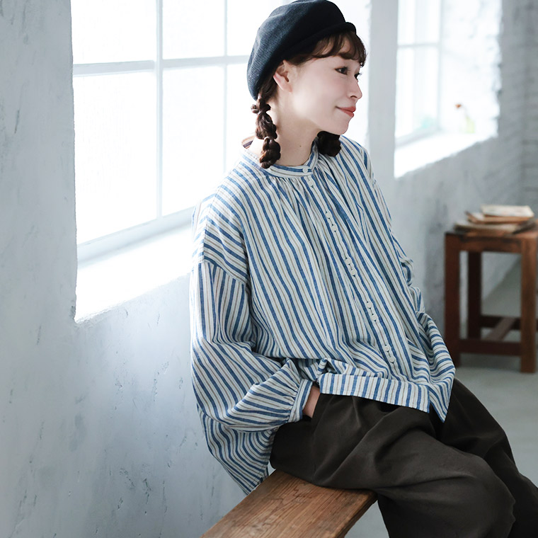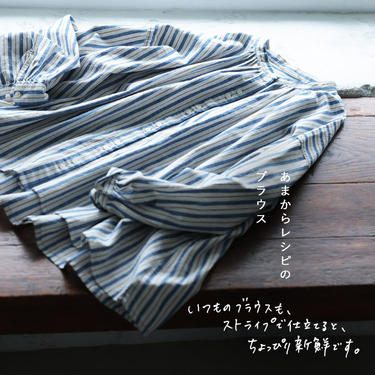 いつものブラウスも、ストライプで仕立ててみるとちょっぴり新鮮です。