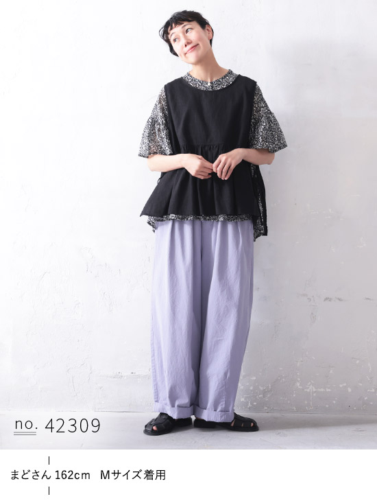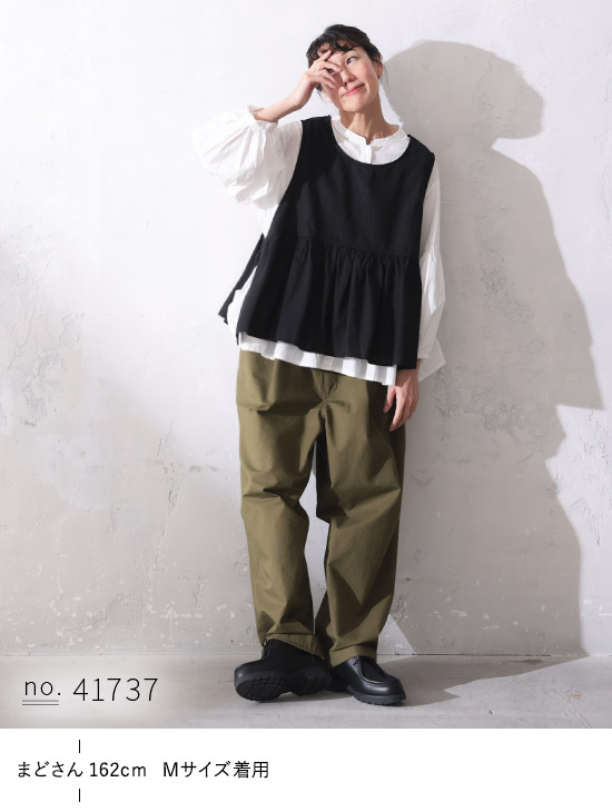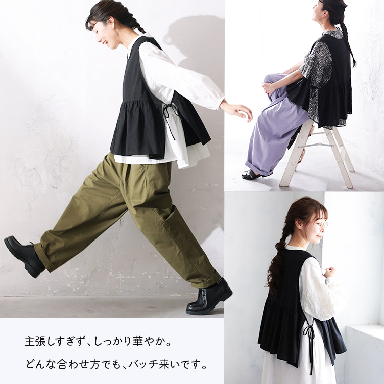 裾がヒラヒラで、スナップやモデルさん達がコーディネートで良くこのベストを合わせていたので気になっていて、すっごーくレビューが参考になりました。157か8cmで70~72kgの変動のある大胸さんの私でもMで余裕でした。身体の幅がある、と思っていても最初から大きく作られているのかな?横のリボンも長くてレイヤードしやすいし、被って着られて便利です