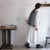 157cm 48kg Mサイズ購入 デザインが大人可愛い。裾に向けてやや広がりのあるラインとか 生地の織り感のあるグレーカラーが良いです。 薄すぎず、厚すぎずなので、早速手持ちの黒Tシャツの上に重ねてみました。61歳ですがw違和感なく着用出来て、周りの人とかぶらないので大好きで愛用してます
