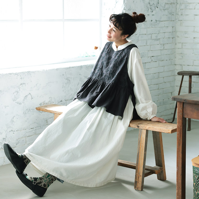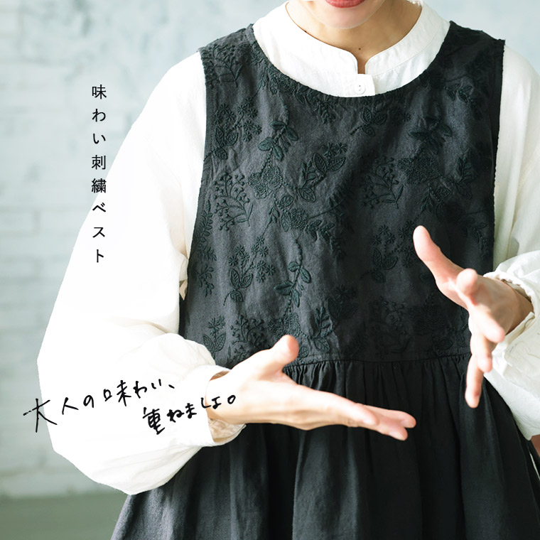 ひらり軽やかなベストで、大人の味わいをトッピング。