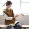 うしろでシャツとの重ね着を遊ぶニットベスト