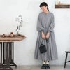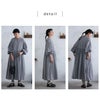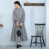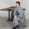 私にはウエストの切り替え位置が少し高めかなぁ? 腰回りのギャザーが膨らむかなぁ?と少し心配だったので 着丈確保と切り替え位置を少しでも下にしたくて1サイズアップで購入しました。 おかげで切り替え位置も高すぎずのちょうどいい位置で、ギャザーも膨らまずで嬉しい。 袖のフリルの高さが低めでそこまで目立つわけでもなかったので 思っているほど甘々ともしておらず、実際はわりとベーシックに近い感じのワンピースでした。 シャンブレー生地と聞くと少し厚めだったり、ザラリとした肌あたりがあるのかな?と 想像したのですが生地感はとても薄くてツルっとしていて滑らか。すごく涼しいです。 落ち感もあって安っぽくないですし ギャザーの陰影やドレープがとても綺麗で縦ライン効果もあり のっぺりとせず素敵です。 グレーの色味も薄すぎず濃すぎずで ロングシーズン さらには末長く愛用できそう。 着用していないから分からないけれど汗染みが目立たないといいな。 袖をたくし上げている画像ばかりでわかりにくいですが、普通に手首まであるロングスリーブでした。 袖口のゴムはゆるめです。サイズチョイスは着丈重視のダウンがおすすめです。