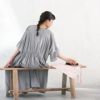 真夏(8月)に着てみましたが、他のワンピと比べてもほんとに涼しいです!モデルさんを真似て、中にアリクイのタンクトップとラミーリネンのレギンスを着ています。1つだけ気になったのは、腕を上げたり伸ばしたりするときに、フリルの付け根が引っかかって引きつることです。
