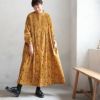落ち葉の絨毯をイメージした柄を、1枚のワンピースに仕立てました。
