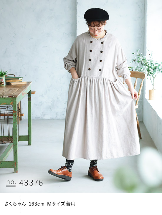 生地が柔らかくて、ポケットのラインとミルクベージュの色がめちゃめちゃ可愛いワンピースです。1点だけ、いつも少し残念に思うのが、梱包時のたたみ方によるお洋服のしわです。今回のワンピースも、せっかくの立ち襟のフリルが見事につぶれていました。可愛いお洋服ばかりなので、梱包する時も愛情たっぷりに取り扱っていただけたらと思います。どうか!宜しくお願いします。