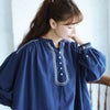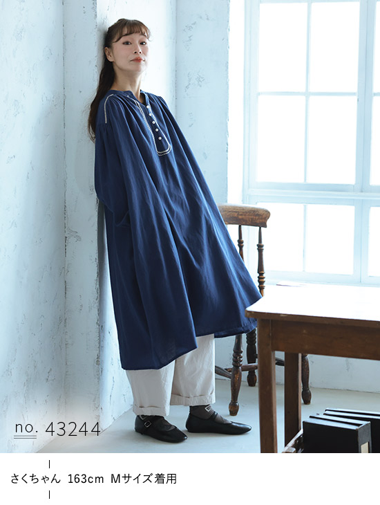 刺繍がほどよく映えるネイビーの生地も、